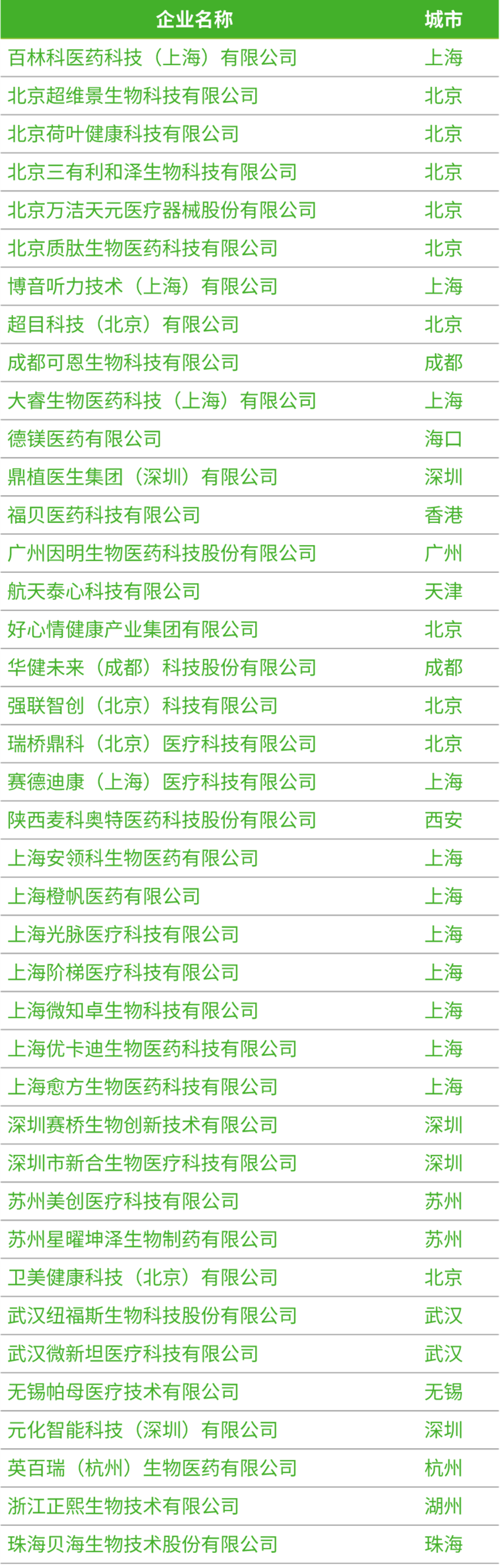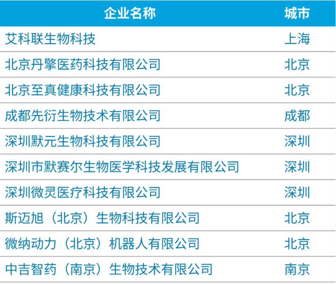 注:榜单以公司首字母排序,排名不分先后