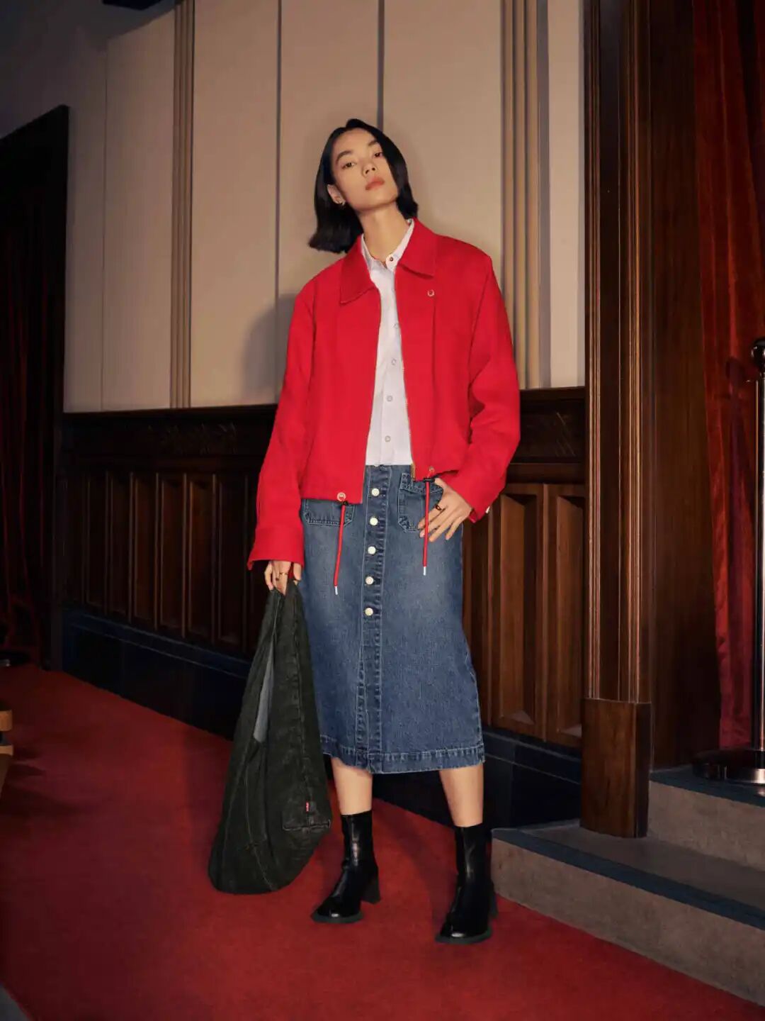 女装系列同样兼顾保暖与颜值,加厚仿羊羔绒外套能轻松抵御冬日寒意。Ribcage 高腰直筒牛仔裤修饰腿型效果出色,纽扣半身裙在挺括与柔和间找到平衡,上身既能展现女性的力量感,又不失优雅,轻松穿出自信松弛的状态。