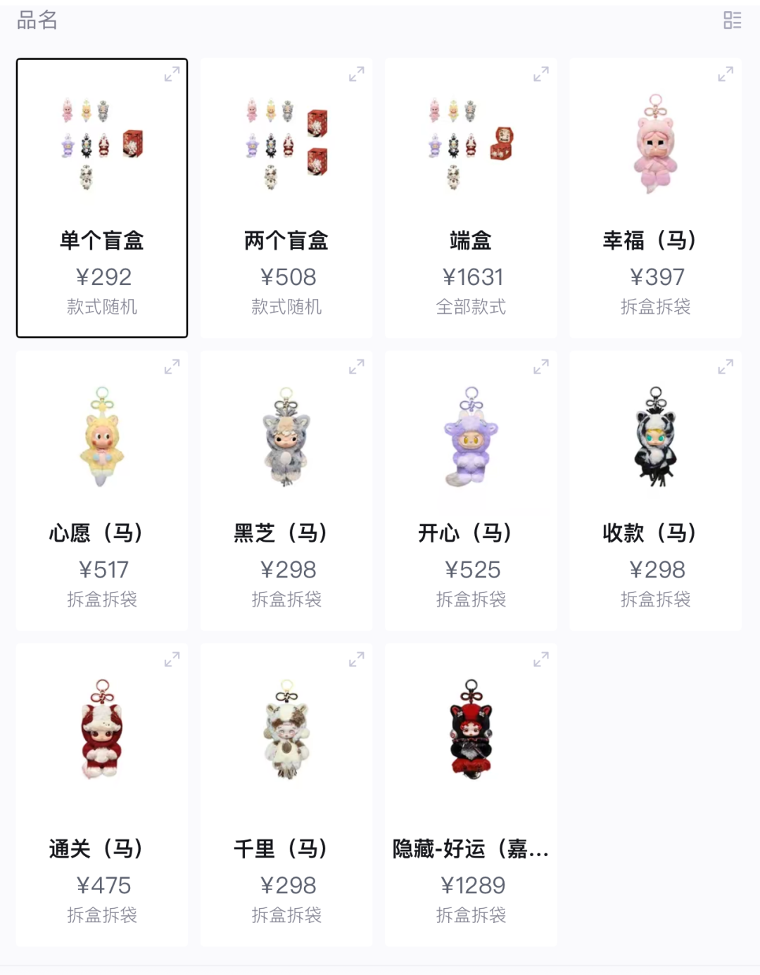 上周泡泡玛特就公布了【马力全开】马年新品毛绒盲盒,让潮玩变成了马年的祝福,真的诚意满满了,不仅直接甩出了堪称 “神仙打架” 的全明星阵容,各大热门IP齐上阵,而且毛绒的细节上也花了心思:各大ip均采用的小马的形象,挂绳也采用了中国结的样式,氛围感一下就拉满,就好像说了千百遍的“马上”(有钱、成功、好运...),也有了可以被拥抱的形态。