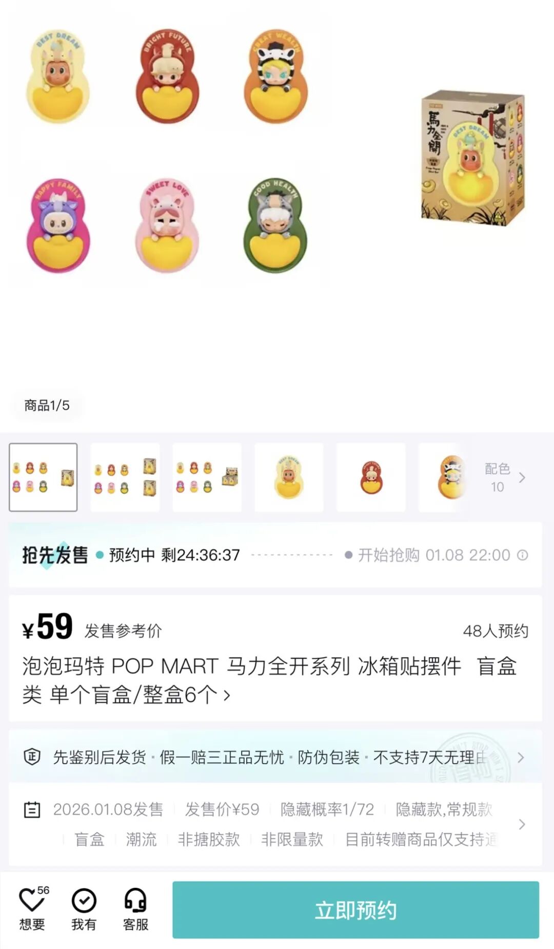 凭借严格的鉴别机制与对盗版的零容忍态度,得物赢得了品牌的充分信任,成为除了天猫、京东和抖音之外唯一一家泡泡玛特官方发售平台,现在每周四晚上10点都能为大家带来官方原价发售、抢先发售的稀缺人气单品!