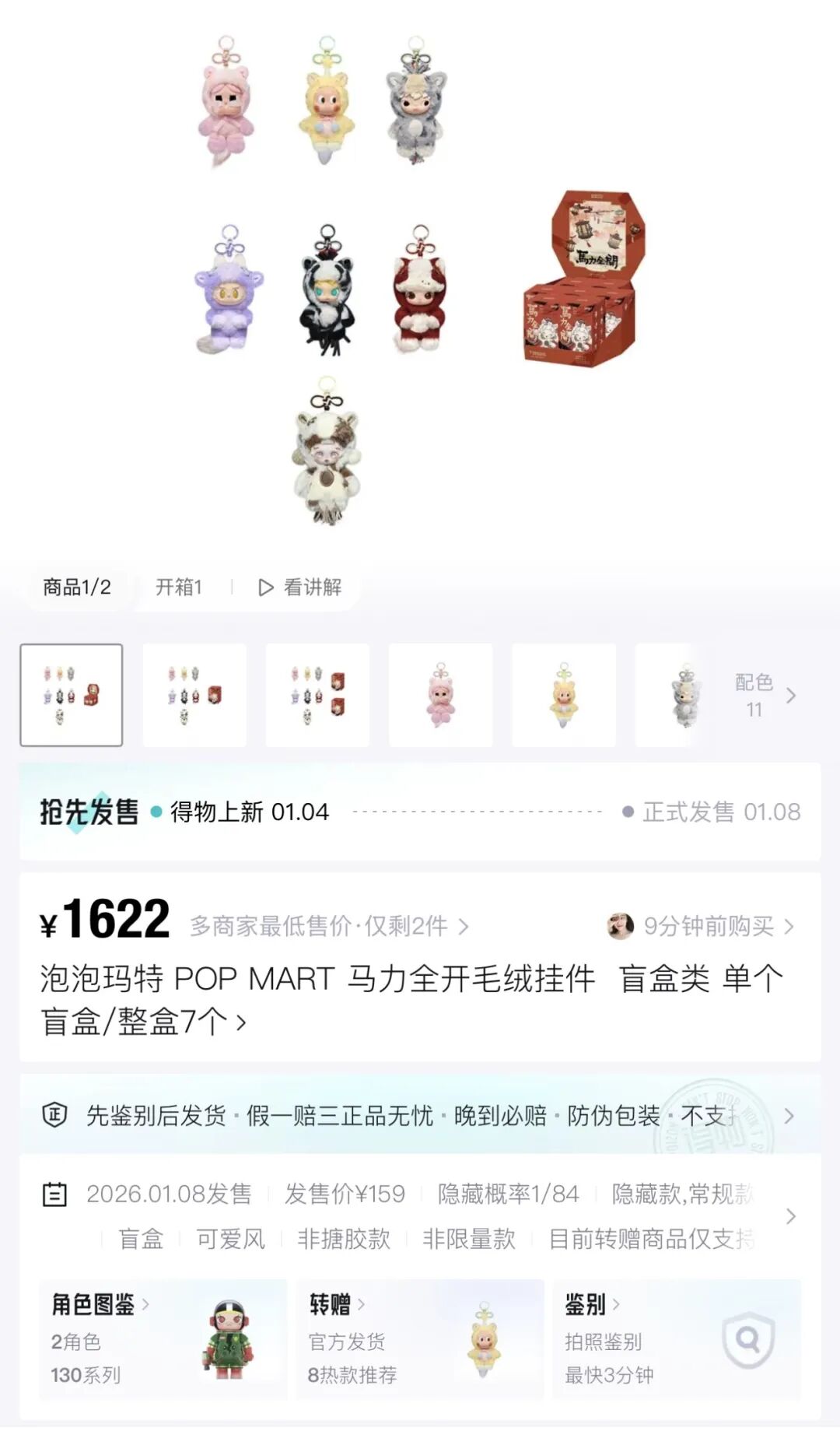 针对盲盒款,得物不拆封盲盒本体,会严查盒体10+处细节,确保是未拆封,未调包商品的全新正品。