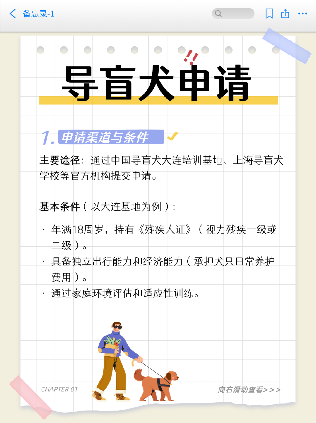 近年来,国家出台了相关法律法规,各地也积极支持导盲犬的发展,公众对导盲犬的认知度和接受度不断提升。《中华人民共和国残疾人保障法》明确规定:盲人携带导盲犬出入公共场所,应遵守国家相关规定。2023年9月1日,《中华人民共和国无障碍环境建设法》正式实施,为导盲犬工作提供了更坚实的法律保障。