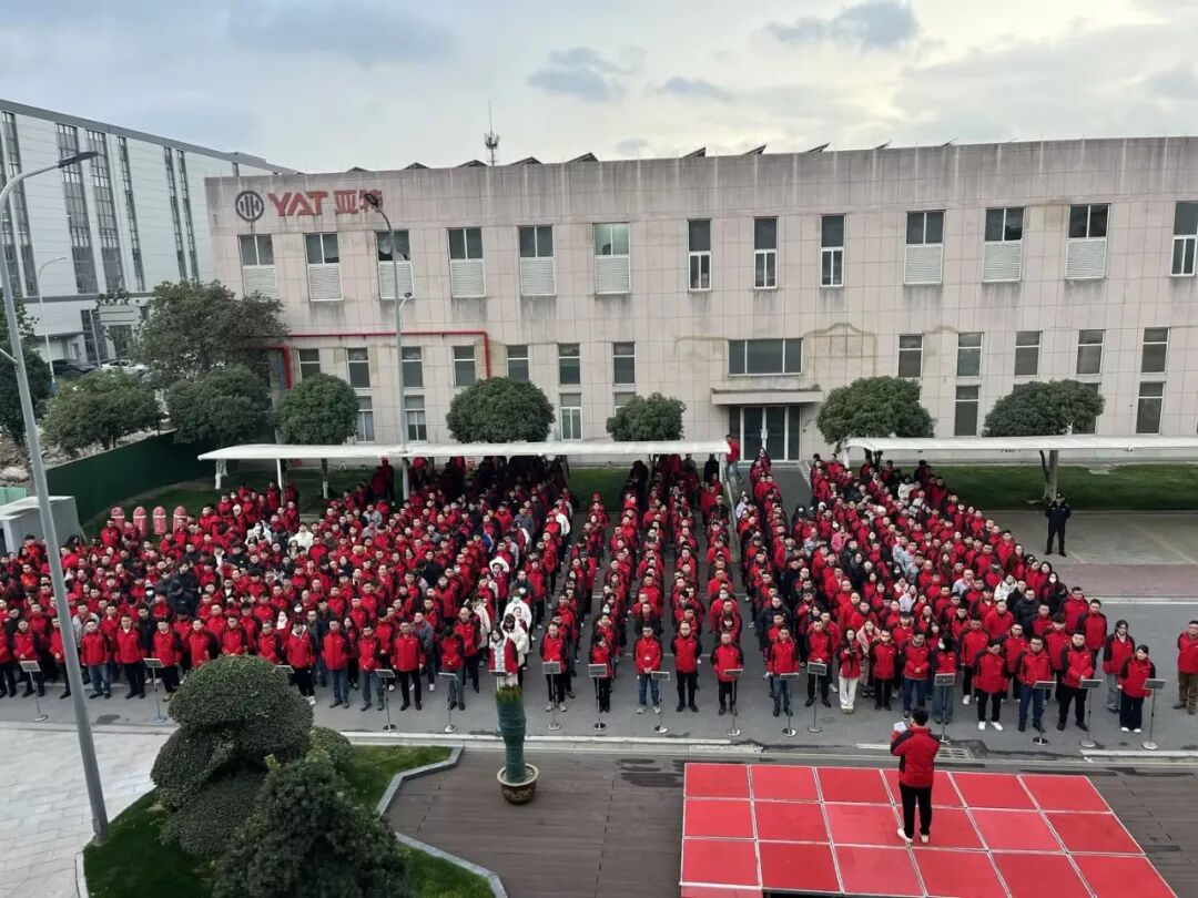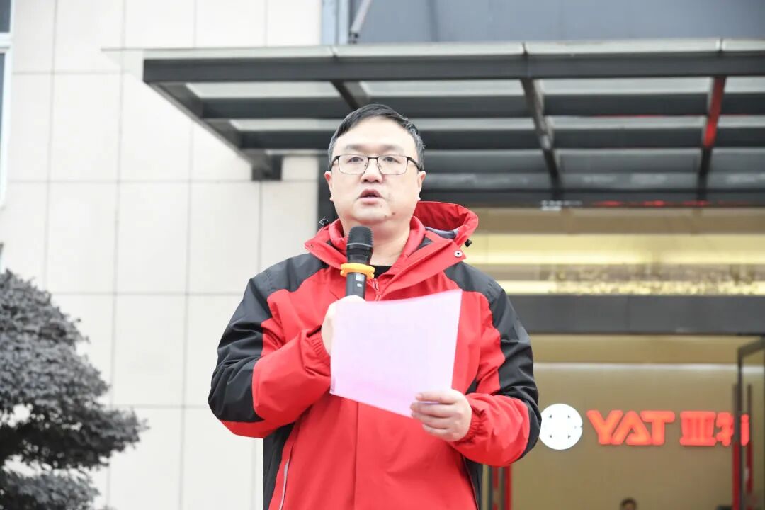 冬阳温淡,朔风微凉。1月20日早晨,亚特家人们精神抖擞,整齐列队,进行公司第一季度早会。