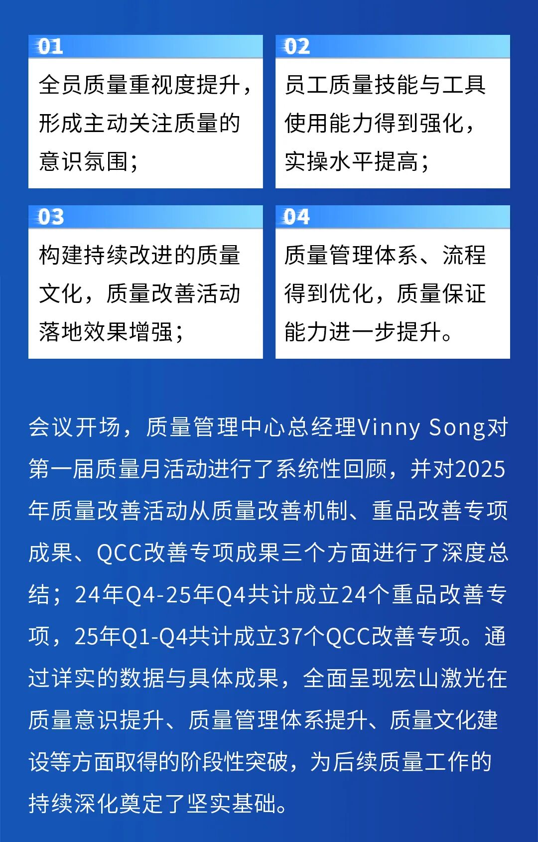 夯实质量基础,提升产品品质丨宏山激光第一届质量月活动总结暨表彰大会圆满举行