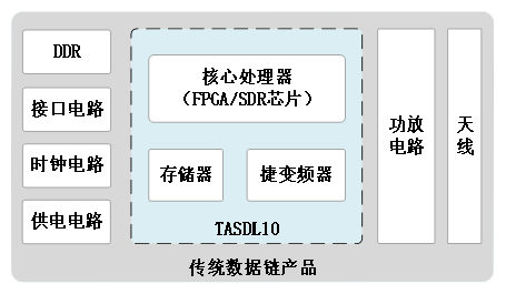 为了验证芯片的抗干扰性能,工程师们带着设备奔赴戈壁滩,在高温、强电磁干扰的恶劣环境下反复测试;为了优化板卡面积,他们对着传统方案的芯片尺寸数据精打细算 —— 传统数据链产品采用 “核心处理器 + 捷变频器 + 存储器” 的组合,仅芯片面积就达 1109mm²,且实际板卡占用面积远大于此。而 TASDL10 通过高度集成化设计,将芯片面积压缩至 625mm²,直接让板卡核心部分面积降低 50% 以上。
