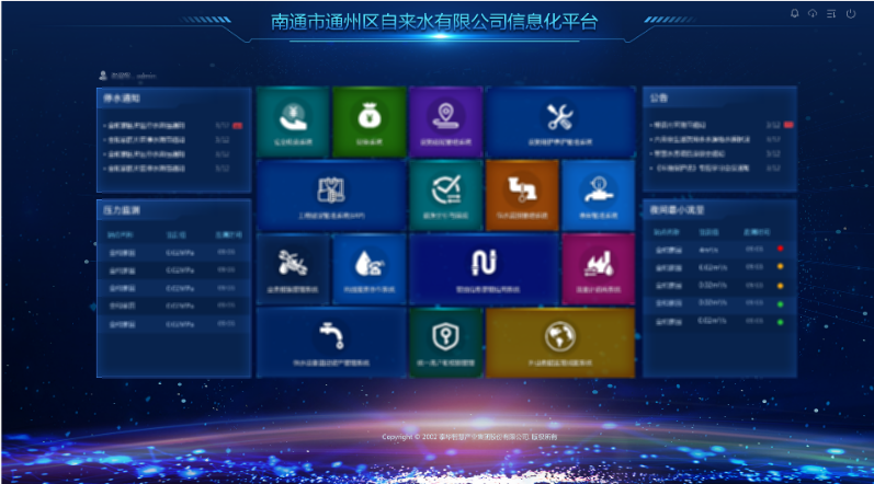 聊城水务集团通过数字化转型项目为企业经营分析管控、工地可视化及实名制考勤全面引入数字化场景,实施集团“系统当家”建设,遵循管理、执行和监督“三权分立”的原则,一屏便捷管理,实现各环节制度流程化、透明化。