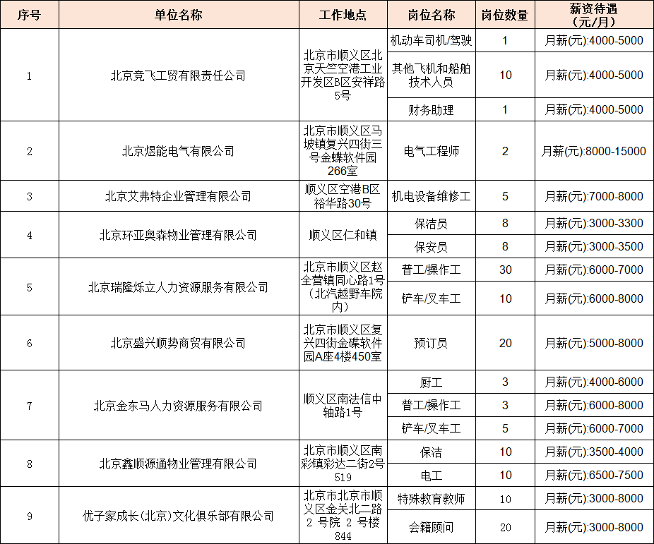 9.招聘会举办地址为顺义区人力资源公共服务中心(顺义区北上坡路26号劳动大厦南楼一层)。