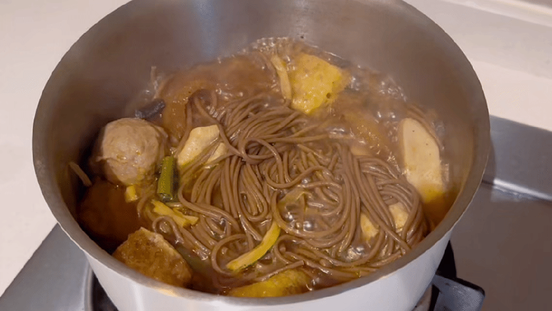 做法:水开后放入面条,加点自己喜欢的菜和肉,煮 4-6 分钟后捞出。