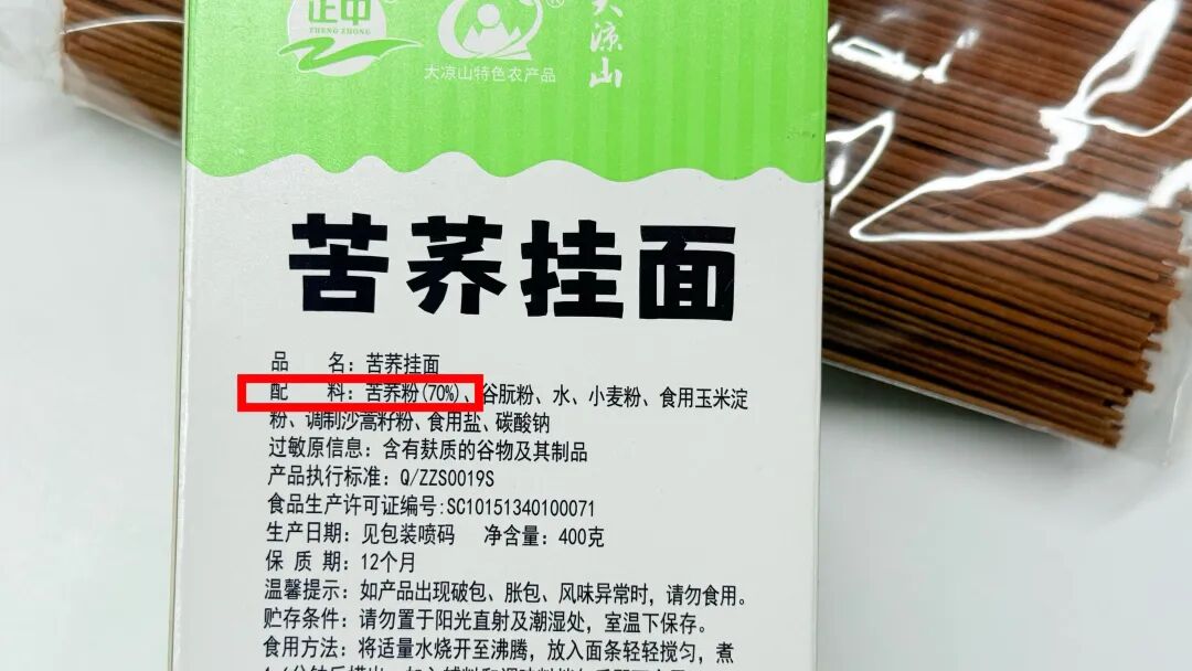 ✅含量靠谱:70% 苦荞粉,而且标签上实打实标注。