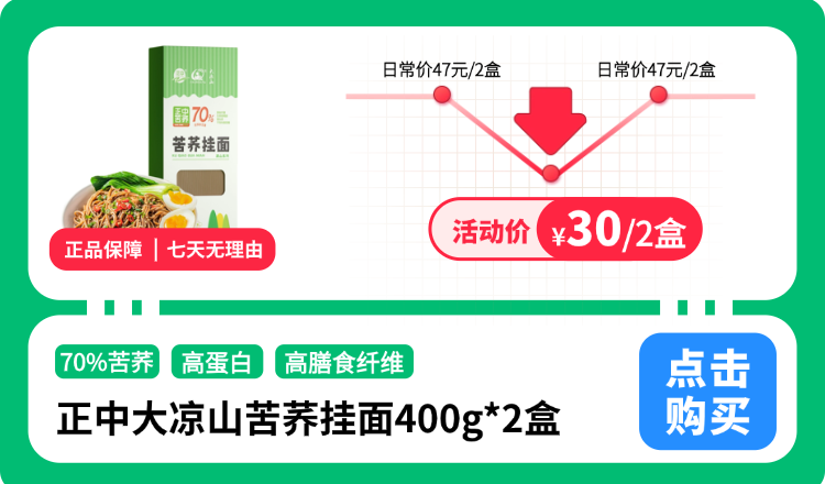把家里的精米白面,换成这款来自大凉山、高海拔、70% 高含量的苦荞面,就是对自己和家人健康的一笔最小成本的投资。