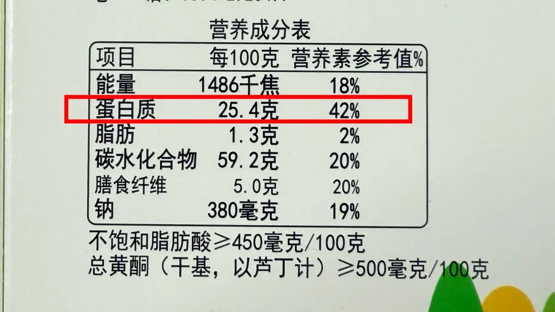 ✅ 营养丰富:蛋白质含量就高达 25.4g/100g ,膳食纤维、总黄酮含量也很优秀