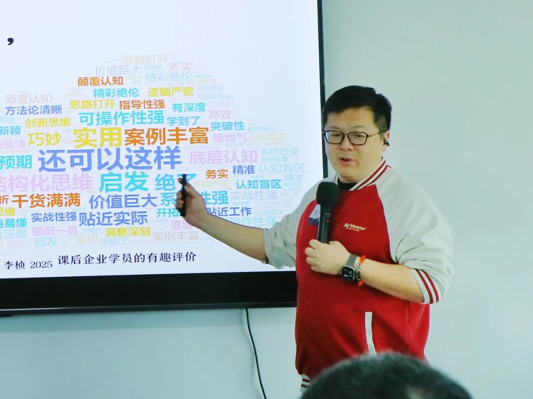 正和岛特邀AI领域资深专家李桢老师授课,以“AI赋能组织提效”为主题作精彩分享。他指出“提示词是AI时代新核心生产力工具”,强调AI落地关键不在技术是否尖端,而在于围绕业务痛点,将技术转化为员工能力,融入组织运营,通过流程重构与组织协同实现效能革命。