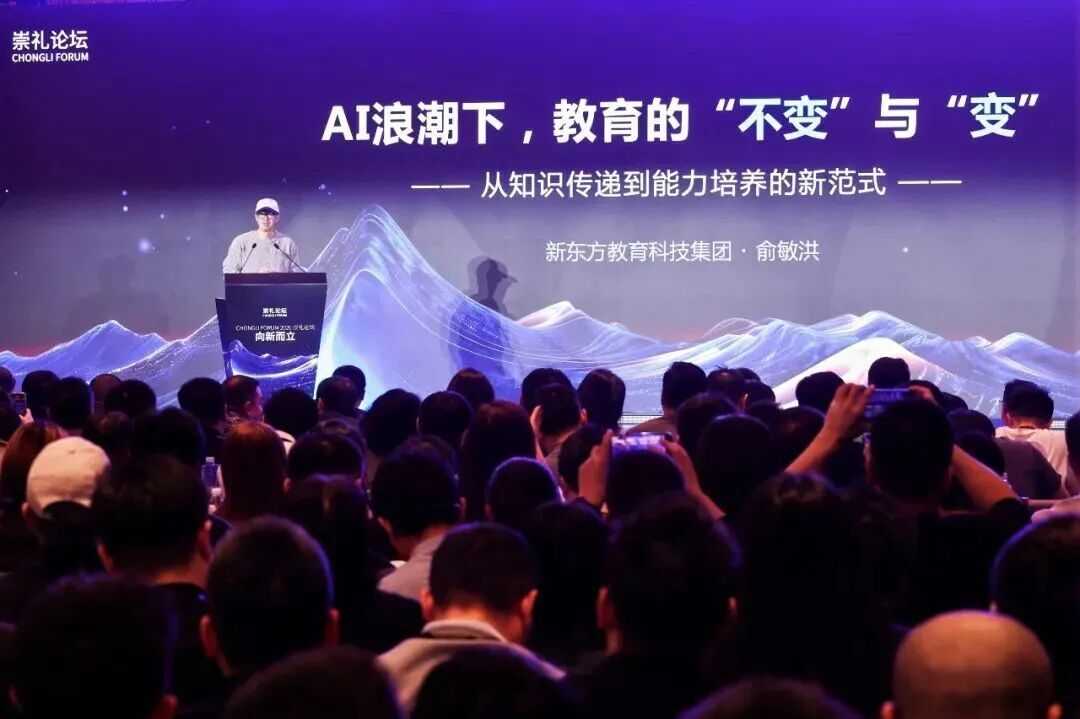 “各位同仁,各位年轻的创业者、技术探索者们,大家好!今天能站在崇礼论坛这个平台,和各位行业精英、年轻力量交流,我内心满是敬畏。”演讲开篇,俞敏洪便展现出对时代与年轻一代的谦卑态度,他坦言,“时代在快速迭代,这个世界的未来终究是由年轻一代创造的,我们这些‘老人’,更要抱着谦卑的心态,向年轻人学习,和时代同频。”这番话既呼应了论坛“向新而立”的主题,也为整场演讲奠定了务实、敬畏的基调。