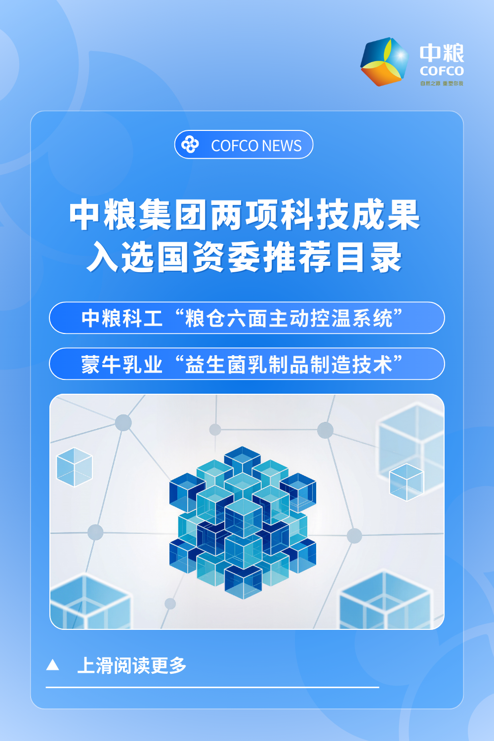 近日,国务院国资委发布《中央企业科技创新成果推荐目录成果手册(2024年版)》,中粮科工“粮仓六面主动控温系统”、蒙牛乳业“益生菌乳制品制造技术”两项成果入选。