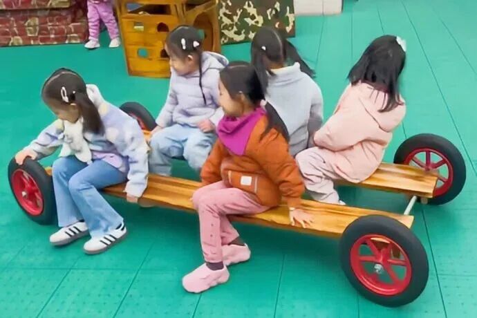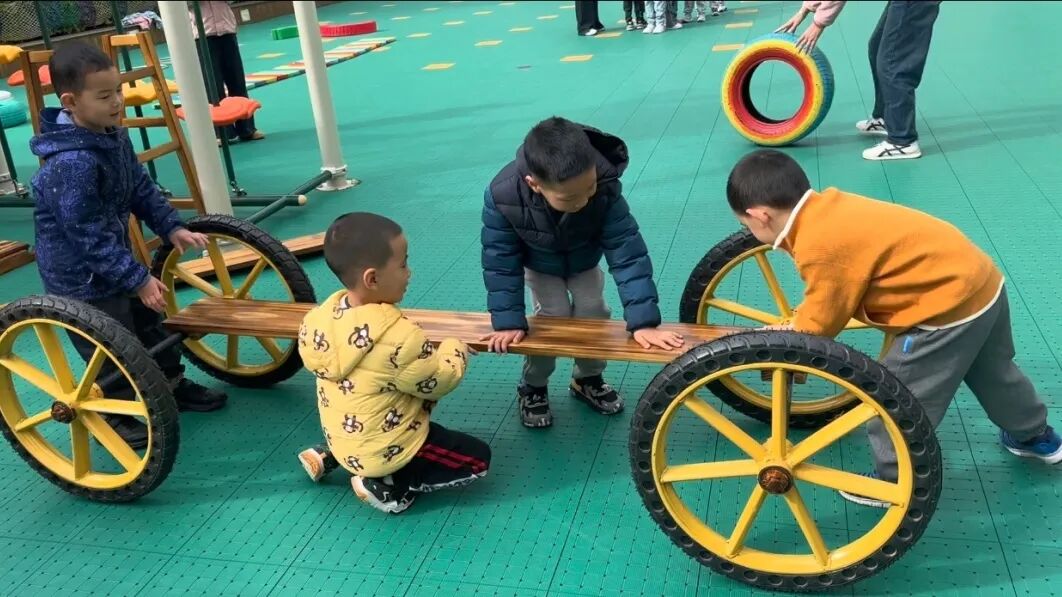 随着游戏一天天推进,孩子们的玩法也越来越有意思。直到一个新“零件”——车轮的出现,让游戏变得更刺激了!“这个轮子能装在木梯下面吗?”一句话点燃了所有人的新兴趣。就这样,木梯变赛车的游戏,热热闹闹地开始了……