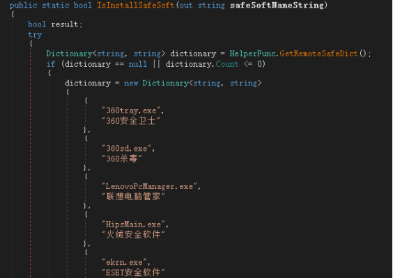 之后,恶意载荷会检测当前系统中是否存在安全软件。而检查的安全软件进程名会优先从云端获取,如果没有获取到则使用软件内置的列表。