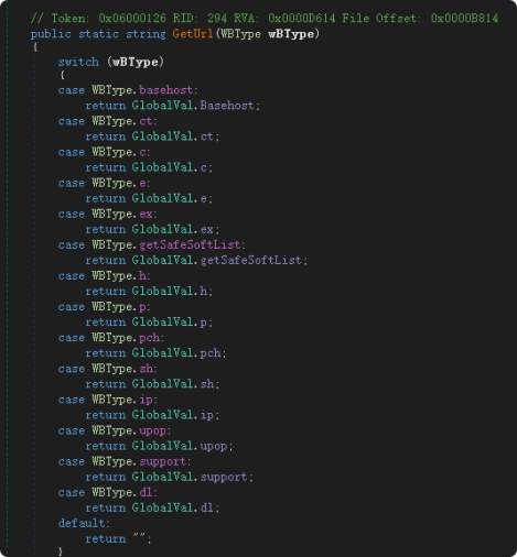 MiddCrypto拼接不同的URL并进行访问,分别用来获取:域名更新、安全软件列表、收款二维码、IP信息、在线沟通页面、恶意载荷下载链接等。