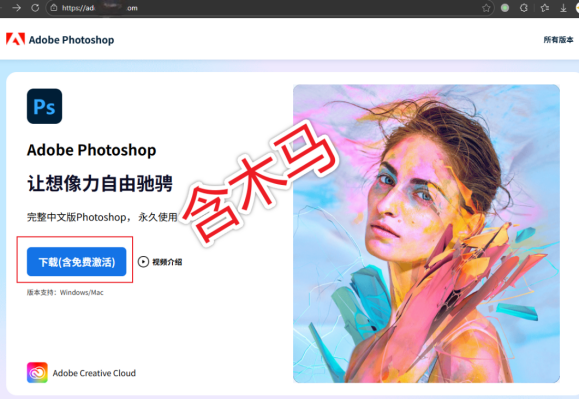 图1. 伪装为“免费激活Photoshop”的勒索软件下载页面