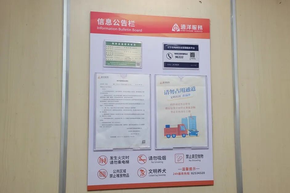 大堂背景墙搭配百福图,福气满盈贺新岁;小区垃圾桶全面焕新,环境更洁;出入口闸道重装升级+新增可视化标识;停车场出入口针对车辆行驶特点,改造车牌识别距离,出行更顺畅;轿厢公告栏全换新,信息展示更清晰。