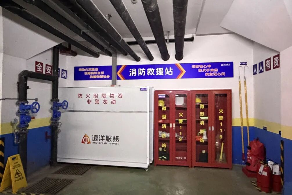 地下入口增设消防救援站,火情时移动挡板可快速隔离,安全不缺位;工具车划分固定摆放区,墙面陈列图文操作流程,服务规范透明,让业主更放心。