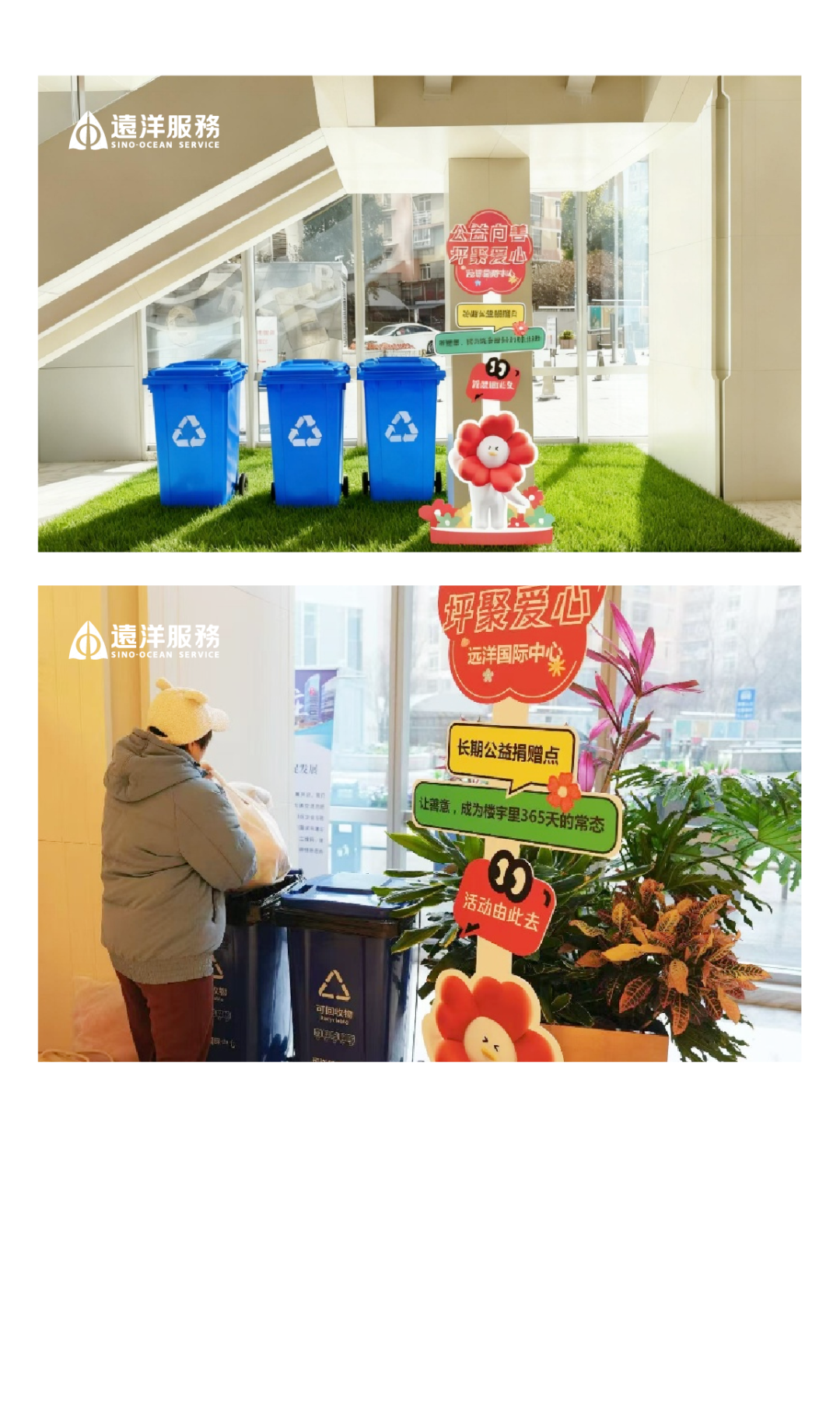 在远洋国际中心大堂,我们设立长期公益捐赠点——“心·恒温益角”,接收来自客户与员工的闲置物品。所有物资由公益伙伴“会兰孝亲敬老服务队”进行专业分拣、消毒,并定向送至:
