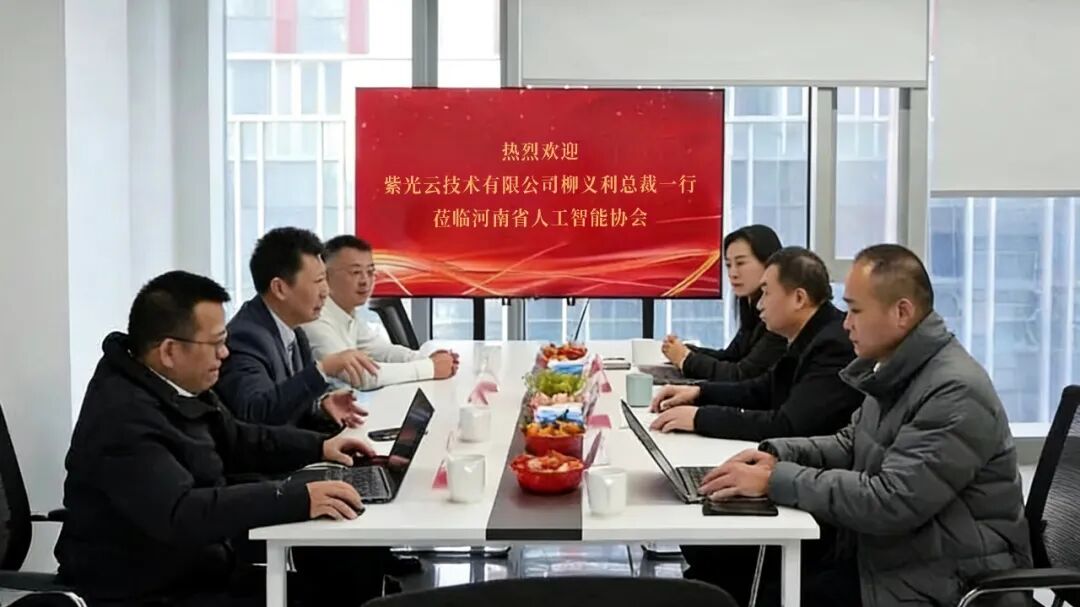近日,紫光云公司副总裁柳义利、数字化业务部总经理唐华一行赴河南省人工智能协会开展交流座谈,并正式加入该协会,成为其理事单位。双方围绕人工智能技术落地、产业协同创新、区域数字化赋能等议题深入探讨,旨在构建常态化合作机制,共同助力河南人工智能产业生态建设与高质量发展。