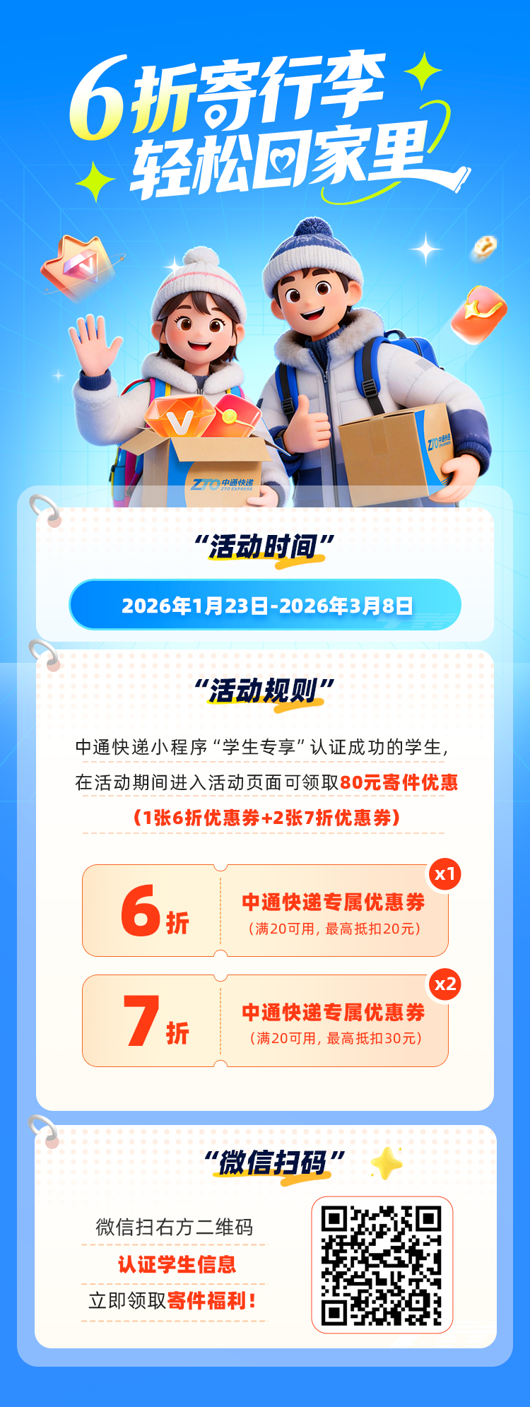 寒假回家解放双手,学生寄件6折优惠!