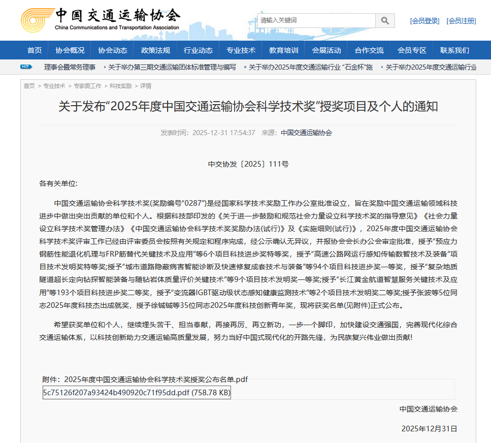 2025年12月31日,中国交通运输协会正式公布“2025年度中国交通运输协会科学技术奖”获奖项目名单,和利时“高速铁路列控地面系统通用安全计算机平台研究及应用”科技成果荣获科技进步奖二等奖!