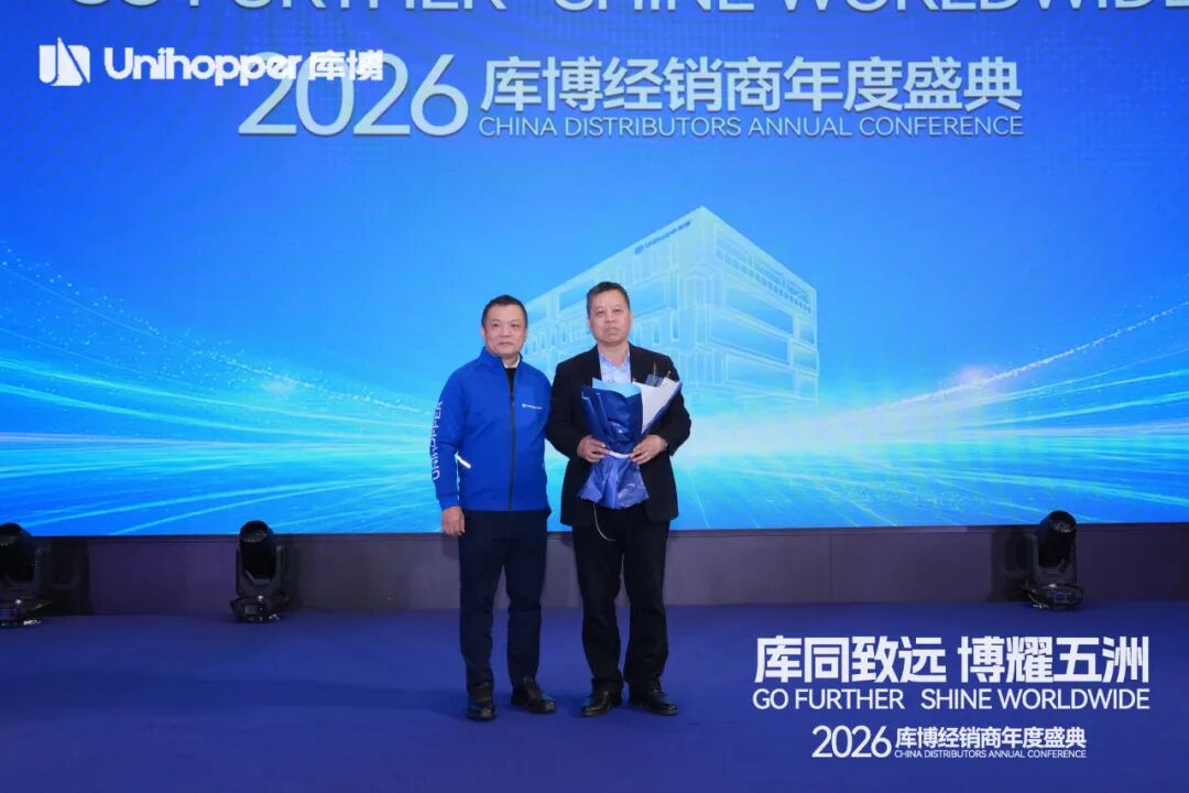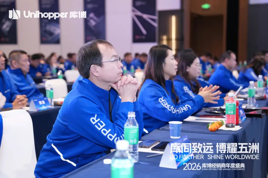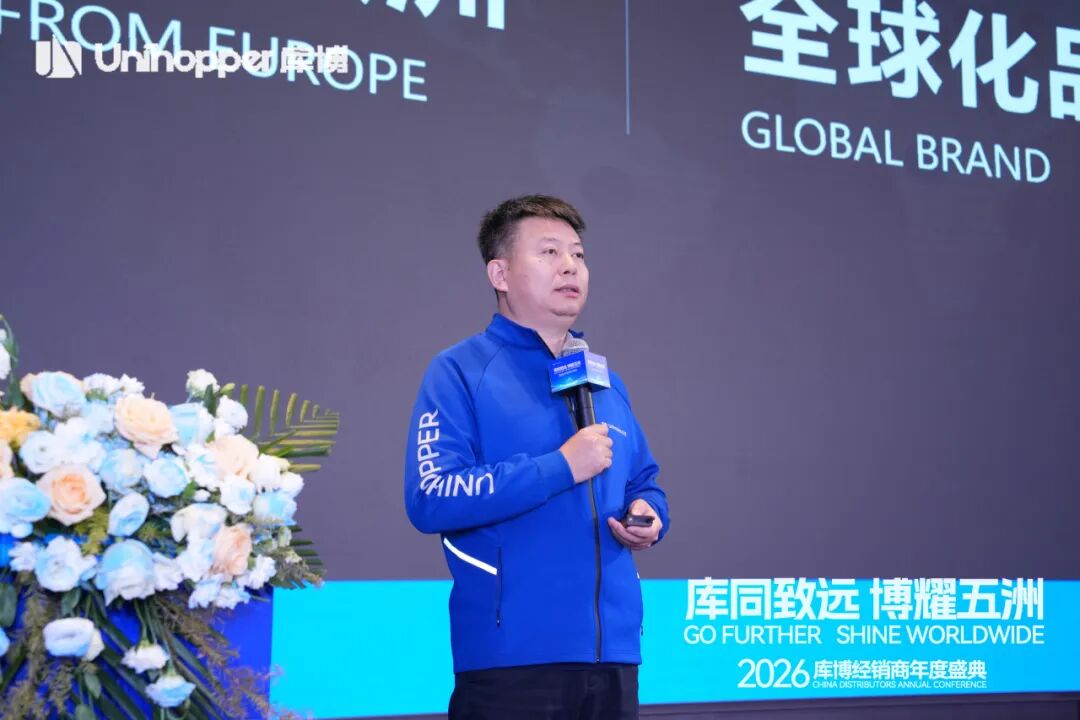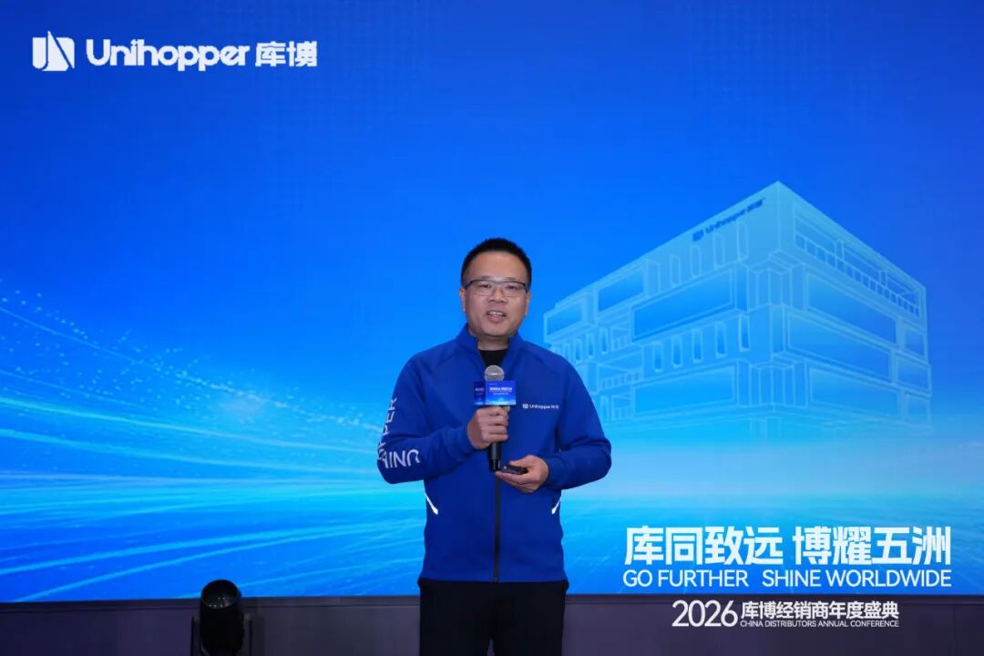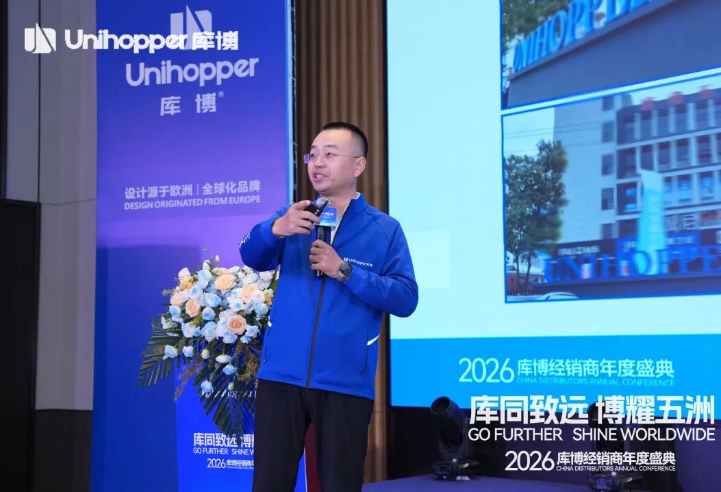 Unihopper库博集团董事长兼总裁潘晟先生在开幕致辞中,回顾了库博在复杂经济环境中逆势增长、稳步拓展全球市场的奋进历程。他特别肯定了集团在全球化业务拓展、经销商数量增长、以及整体业绩攀升等方面取得的扎实成果。