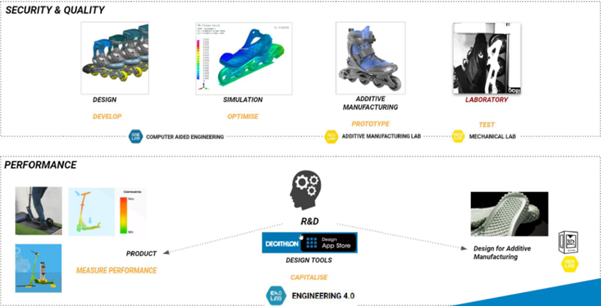 在全球拥有约1600家门店和10万名员工的庞大体系中,迪卡侬的技术办公室扮演着关键角色。这里不仅有一支专业的CAE工程团队负责仿真驱动数字化产品设计,还有增材制造实验室进行原型制作,以及机械实验室执行规范化的产品测试。而在这个技术生态系统的核心,一个名为 “Engineering 4.0” 的变革正在悄然发生。