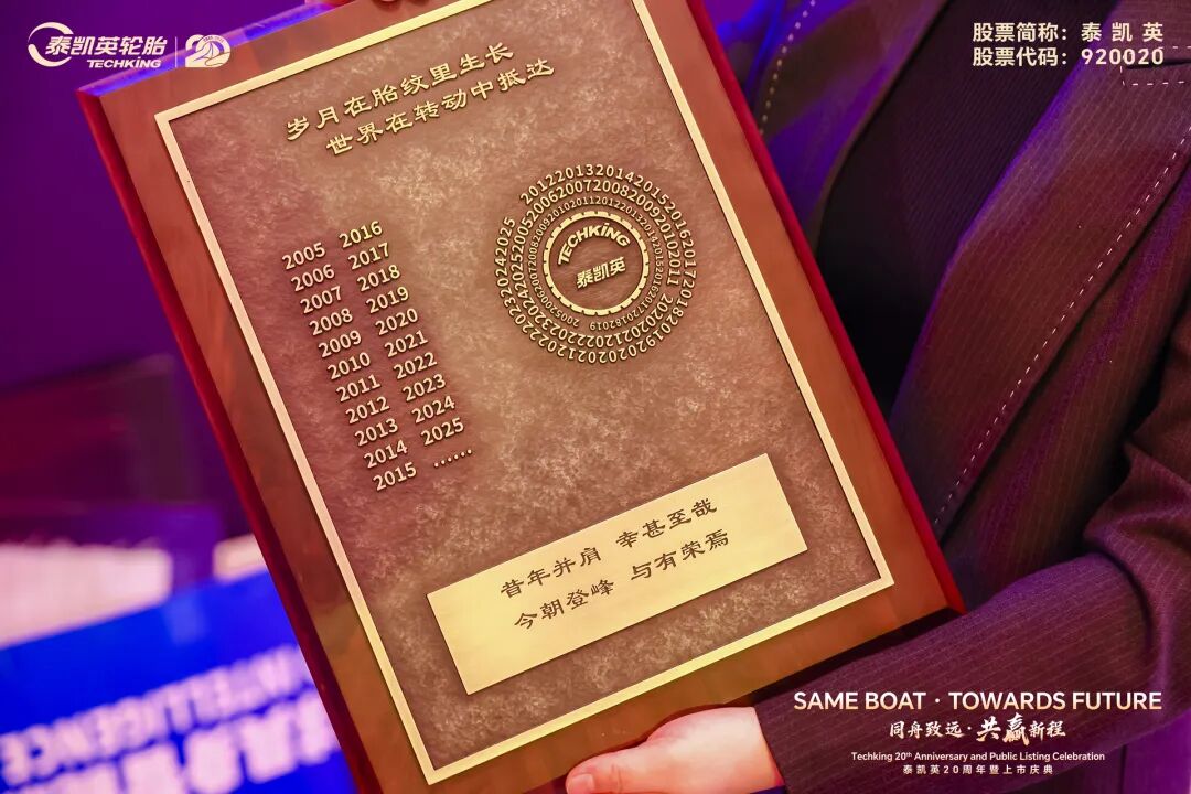 二十载风雨兼程,二十载砥砺前行。从创业之初的步履蹒跚,到今日登陆北交所的崭新起点,泰凯英走过的每一步,都凝聚着所有同仁的汗水、智慧与坚守。2025年,我们成功在北交所上市,这不仅是公司发展史上的里程碑,更是对我们二十年专注与奋斗的一份厚重回响。回望来时路,感慨万千。最初,我们的创业是希望以“技术为王”的初心,打造一个让员工既能“努力工作”,也能“快乐生活”的温暖家园。从最初几个人的拓荒,到一次次在关键转折点上的坚定抉择,再到在产品与技术领域啃下一个又一个“硬骨头”,这条路上布满荆棘,也闪耀着星光。正是这份共同的信念,让我们淬炼出属于自己的核心竞争力,也让“志同道合·共成长·同分享”的文化,融入了每一位奋斗者的血脉之中。在这个特别的日子里,我们最想致敬的,是每一位与泰凯英风雨同舟的伙伴。这份荣誉,属于二十年来在平凡岗位上创造不凡的每一位坚守者,属于将青春、汗水与智慧深深烙进公司年轮的每一位同行人。这份情谊与认同,也超越了时间的界限。我们无比欣喜地看到,许多曾经并肩作战的历史功勋员工,也专程“回家”,来到庆典现场。他们送上的真挚祝福与精心准备的礼物,不仅是一份惊喜,更是与泰凯英家文化最深情的碰撞,是对这段共同岁月最珍贵的献礼。无论身在何方,我们都曾属于同一片星辰大海。这一刻,掌声与荣光,同样献给所有曾为这片热土付出过的你们。