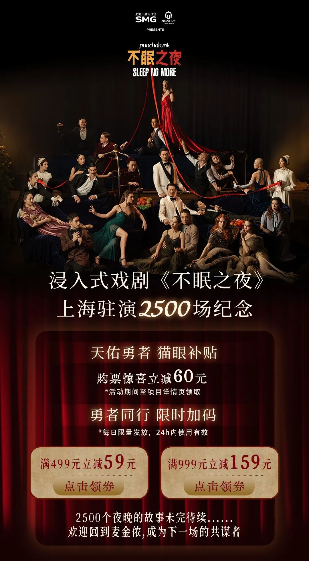 限时领券丨《不眠之夜》上海版驻演2500场纪念
