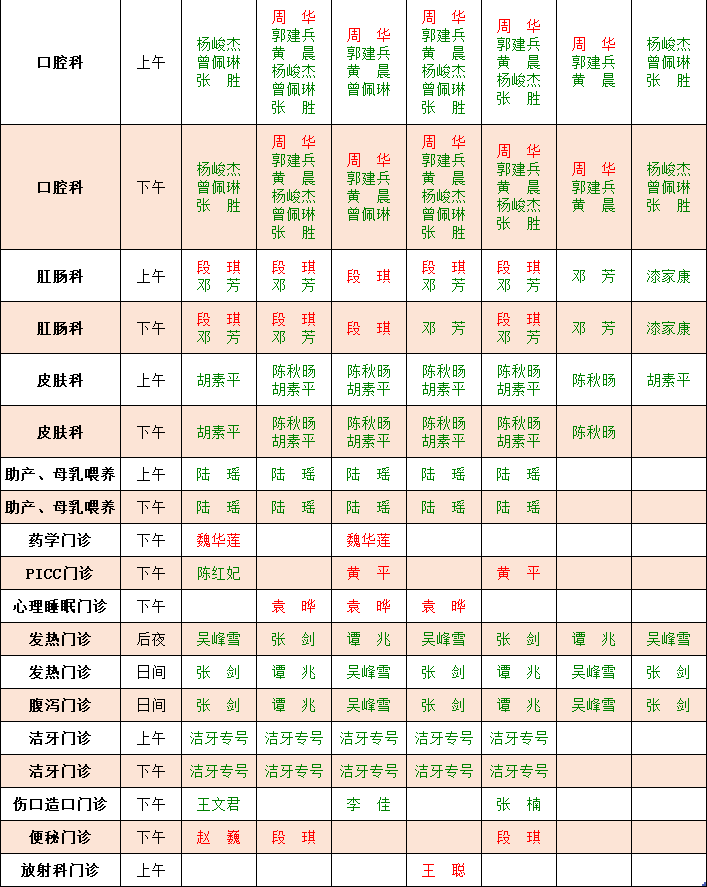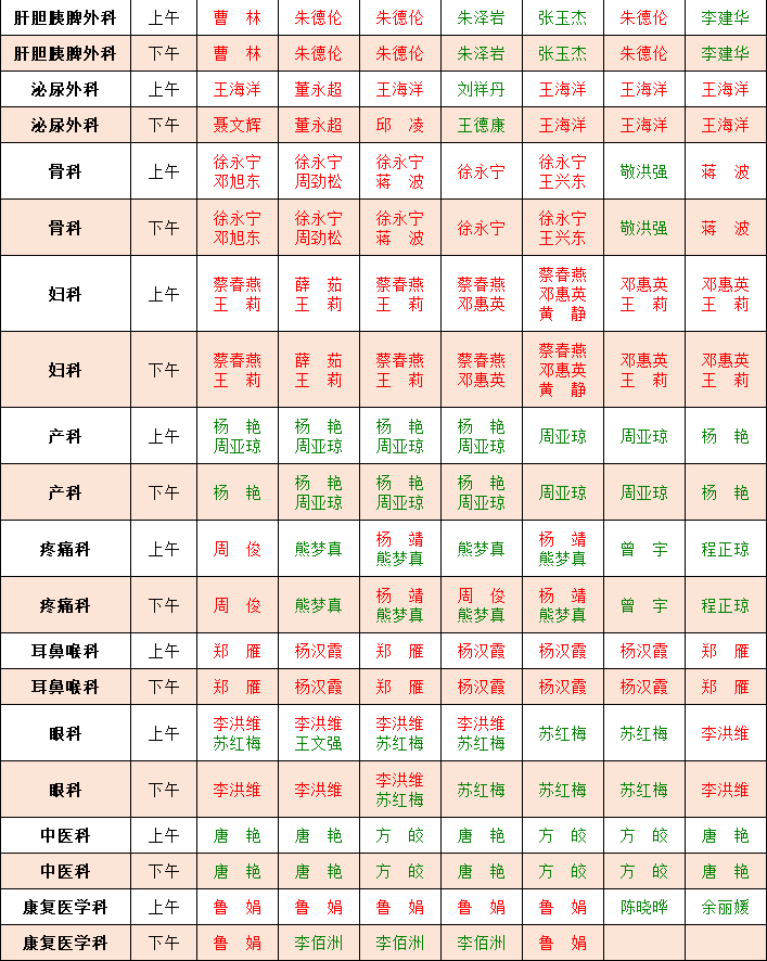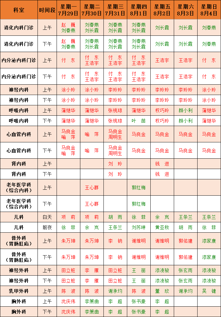 门诊一周坐诊公告(7月29日-8月4日)