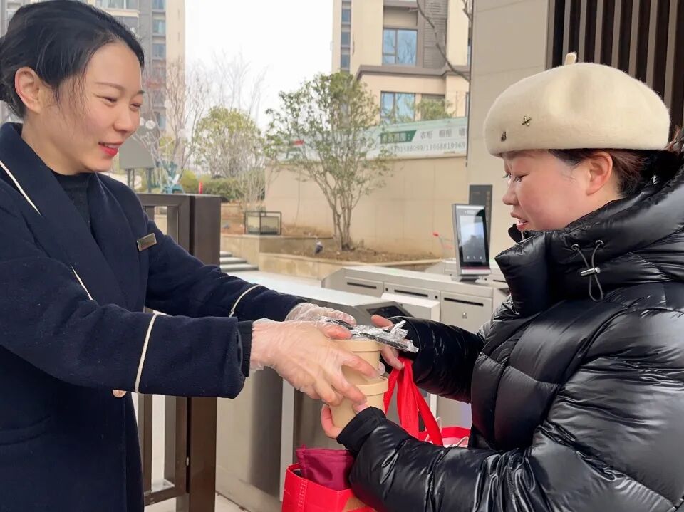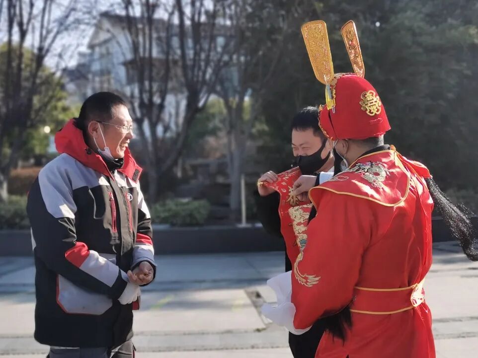 在这天,财神爷早早来到小区给邻居们送“财包”
