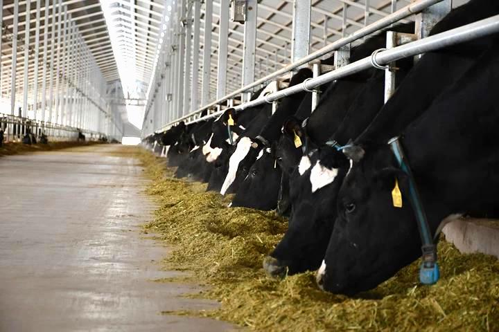 内蒙古嘉烁牧业有限公司牛舍内奶牛尽享美味日粮