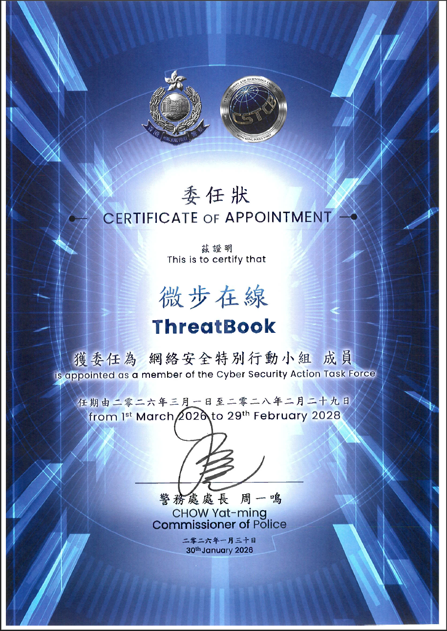 近日,在香港举行的“网络安全精英嘉许计划2025“颁奖仪式上,微步在线正式获得香港警务处委任,成为其 “网络安全特别行动小组” (CSATF)核心成员之一,与小组单位共同守护香港数字空间安全与关键基础设施稳定。香港警务处“网络安全特别行动小组“成立于2024年,今年小组规模进一步扩大,汇聚多间跨国网络安全企业及专家代表协同执法打击网络犯罪,是香港应对网络安全威胁、保障数字经济发展的核心力量。微步与香港网络安全渊源已久。早在2023年,微步在线在香港成立子公司,通过其香港本地服务团队,为香港多家金融机构、通讯企业及政府关联单位提供威胁检测与响应服务,在香港网络安全领域占据重要地位。在2025年“香港网络安全攻防演练-以攻筑防2025”中,微步作为核心技术支持单位获香港特区政府感谢证书。微步此次获任香港警务处网络安全特别行动小组成员,是香港警务处对其技术实力与实战能力的双重认可,作为亚太地区威胁情报领域的领军企业,微步将为特别行动小组注入新的协同防御力量,助力香港打造更具韧性的网络安全环境。未来,微步将持续贡献威胁情报能力及安全运营实战经验,促进香港特别行政区业界网络安全联合防御,携手提升香港整体网络安全防护与韧性,为维护国家网络安全和推动粤港澳大湾区数字经济高质量发展筑牢网络安全底座。