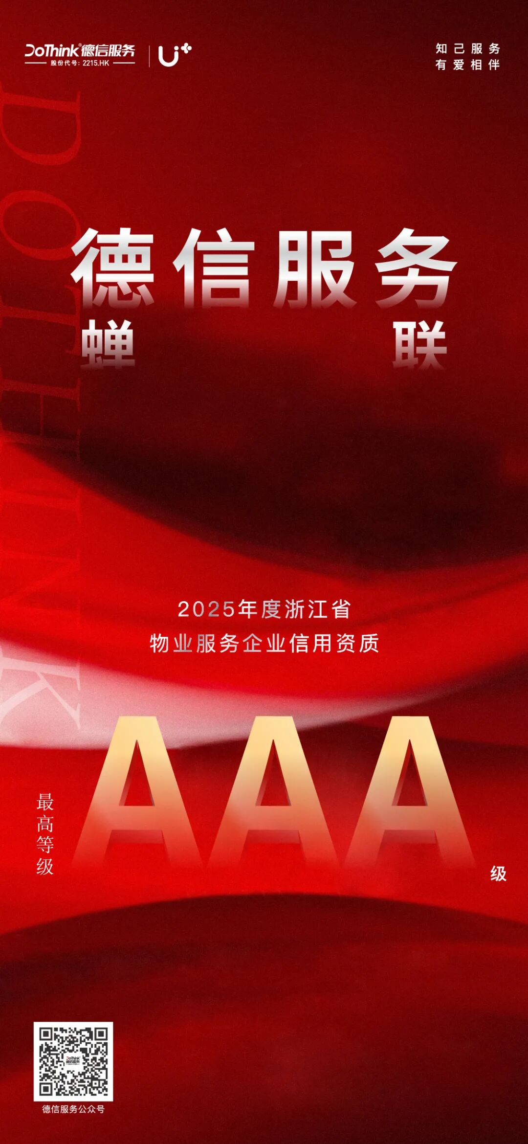 德信服务以良好的信用状况、优质的服务水平蝉联入选浙江省最高等级“AAA”级物业服务信用企业名单。