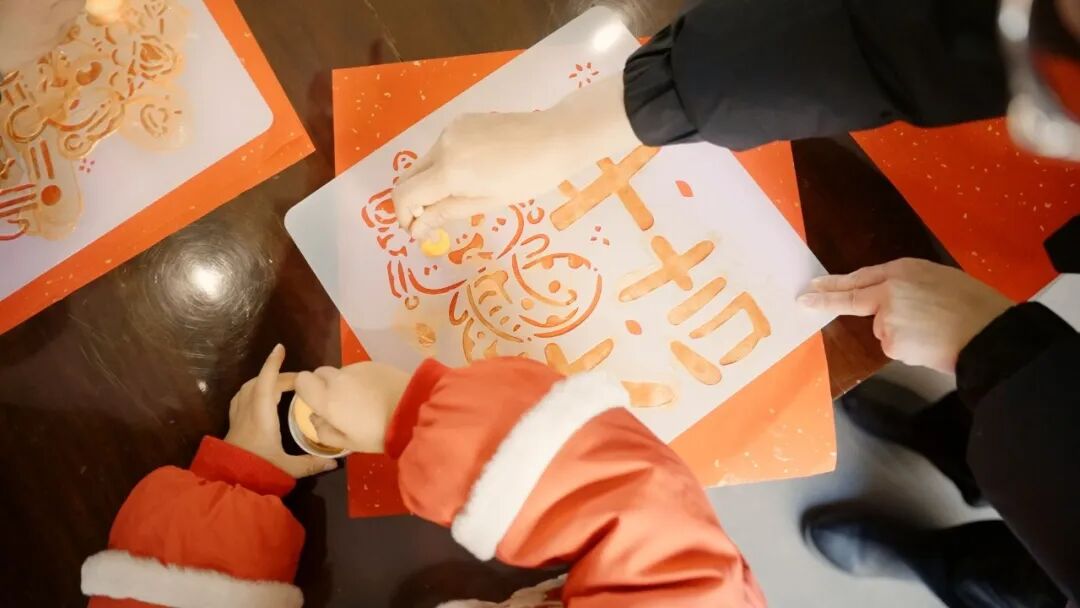 在丽水的元湖一号,在杭州的云望璞园,物业管家们与小朋友们一起,在红纸上用金色油墨拓印出蛇年生肖图案,喜迎乙巳蛇年的到来。