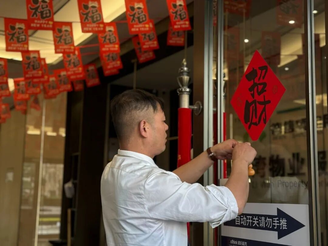 在杭州云湖印,大年二十七,结束了当天空置房巡查的管家小周按照惯例的给业主通报了下房屋情况,顺便还把春联、福字贴了个整整齐齐。