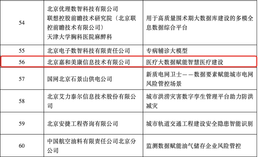 嘉和美康入选北京市2025“数据要素×”典型案例,医疗大数据赋能智慧医疗新未来