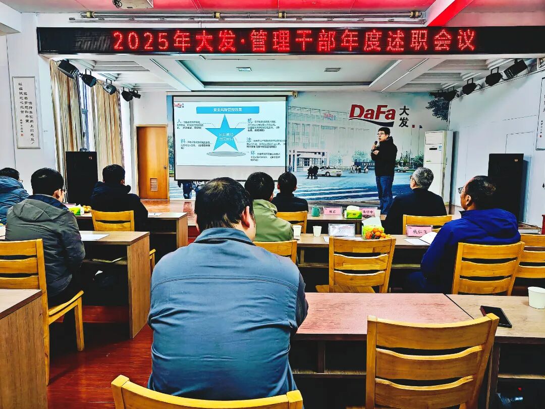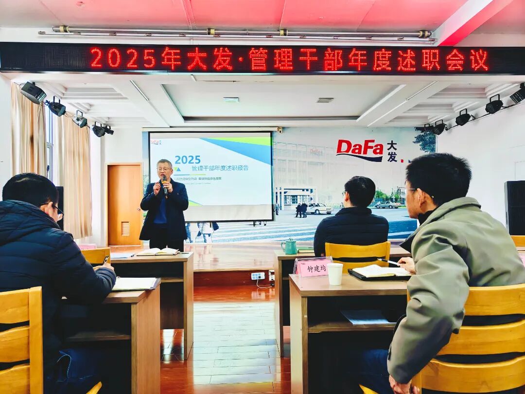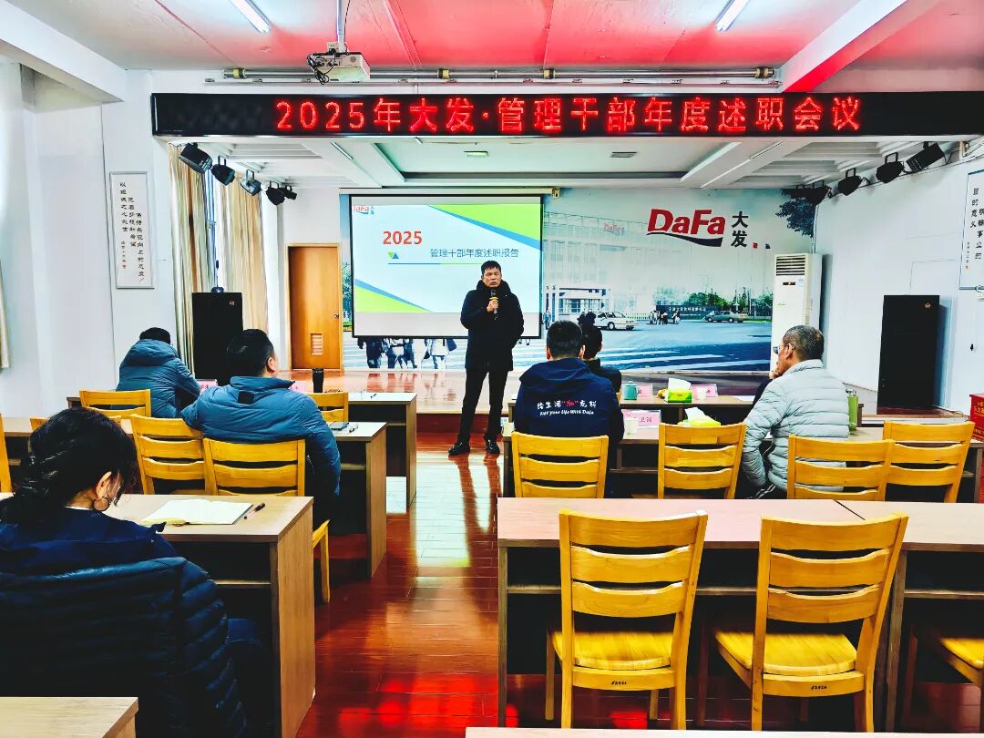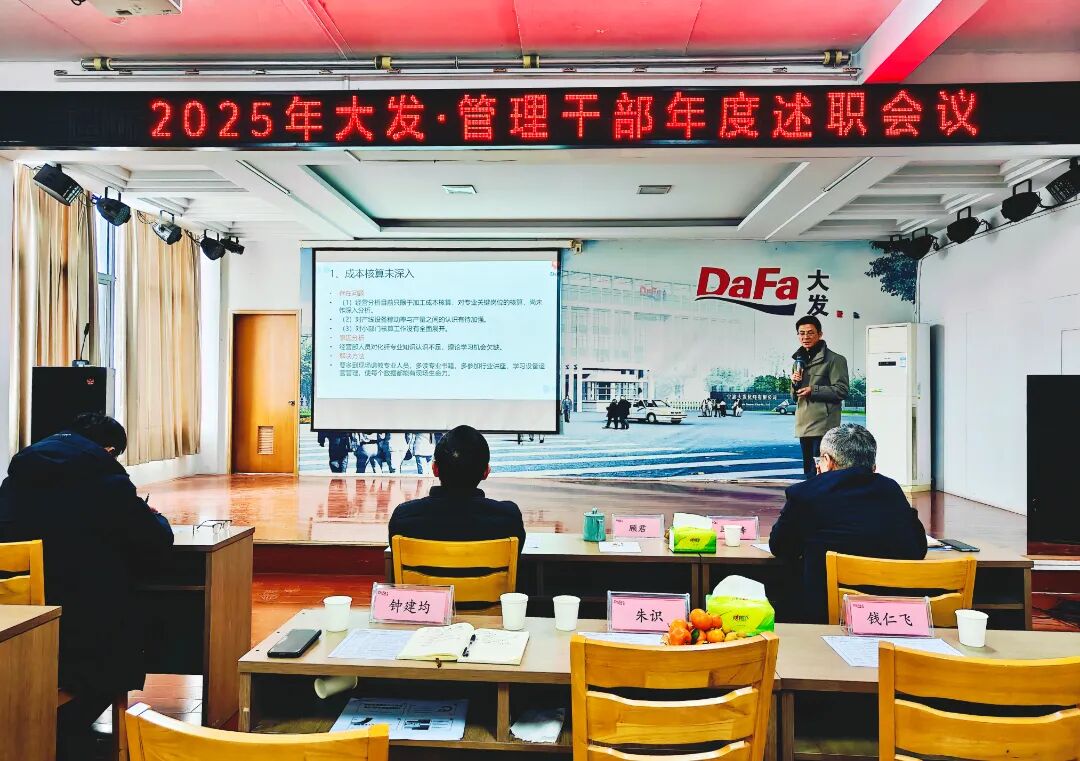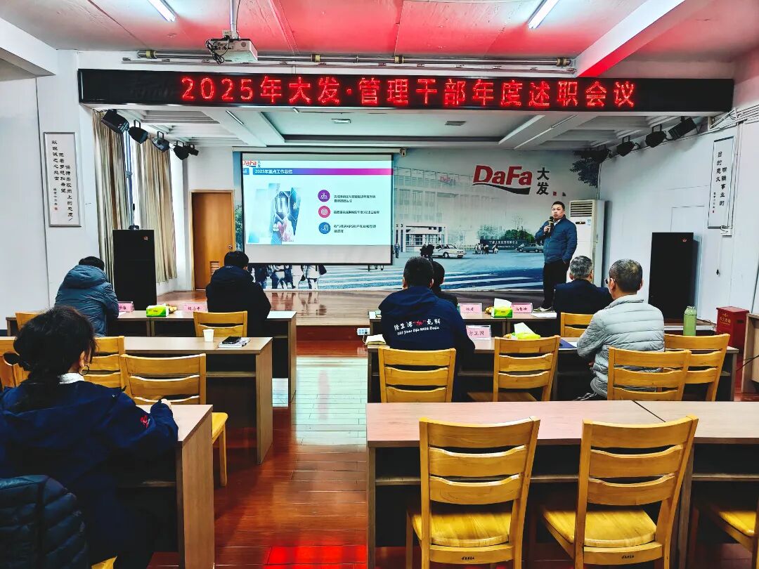 三十载耕耘奋进,铸就今日之基业。新征程使命在肩,凝心聚力绘来日之蓝图。1月27日-28日,公司顺利召开为期两天、共计四场次的2025年度大发管理干部述职会议。本次会议覆盖生产、销售、质量、技术、各职能部门,全体主任级、厂部长级管理干部逐一上台述职,公司高层领导作点评指导,各相关部门骨干列席会议。
