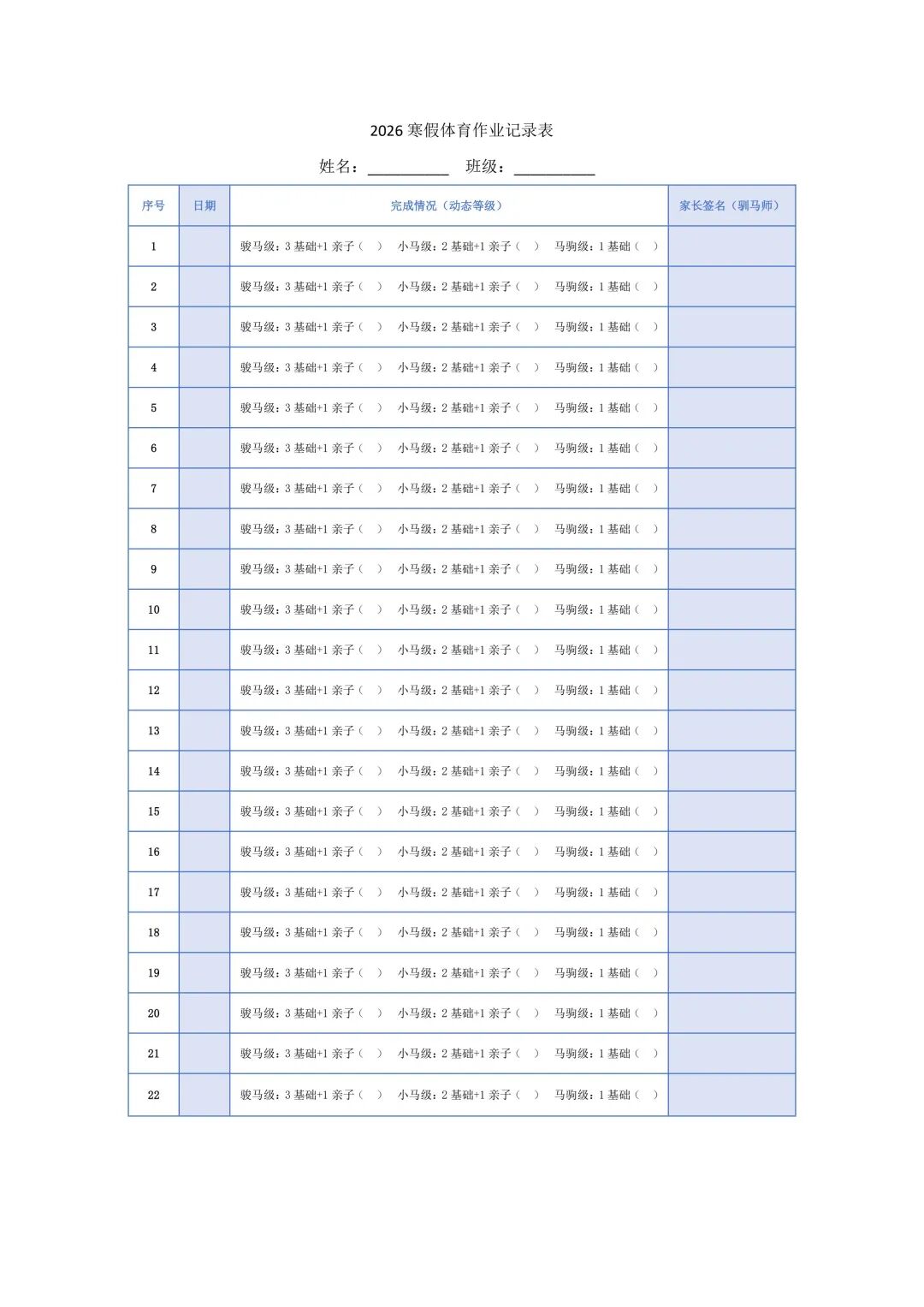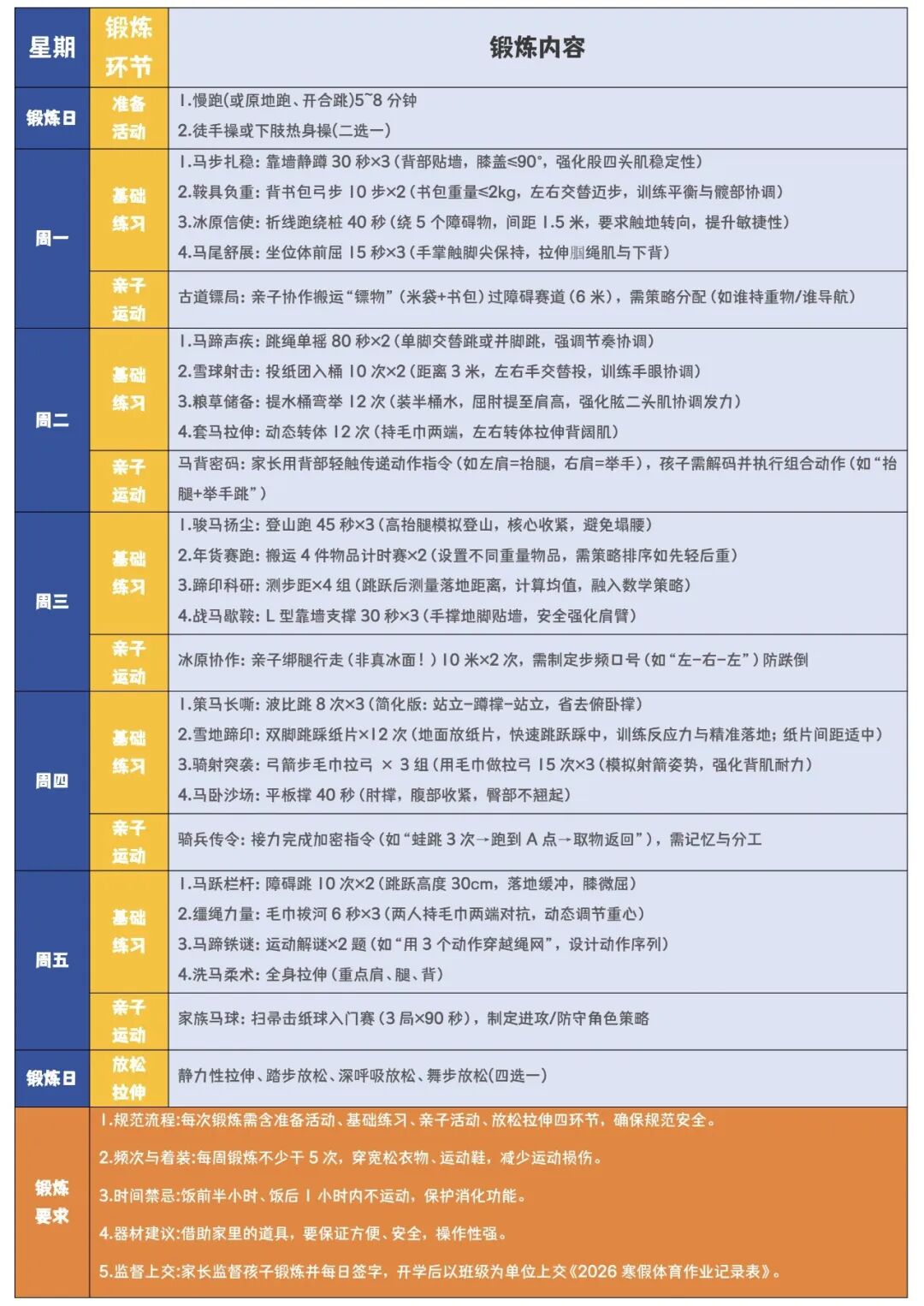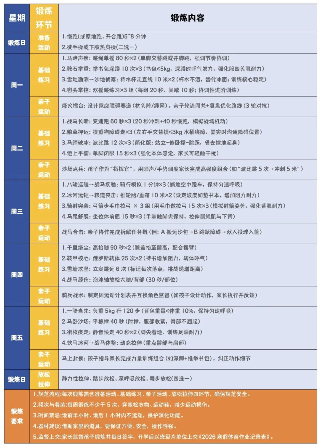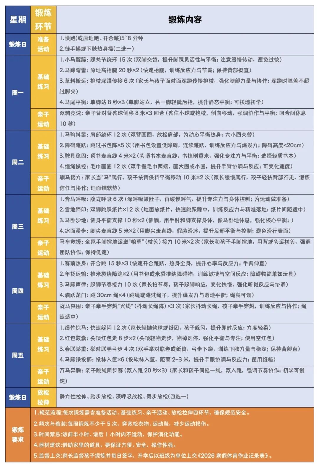 (基础练习任选3项+亲子项目即达标)