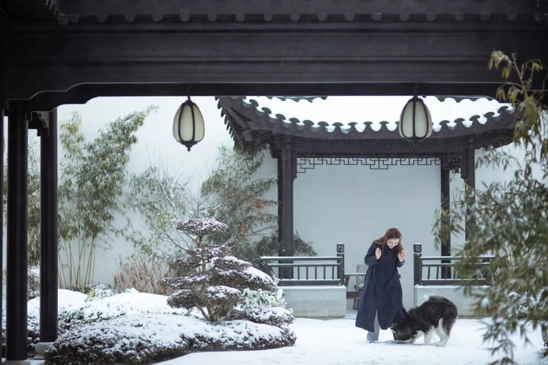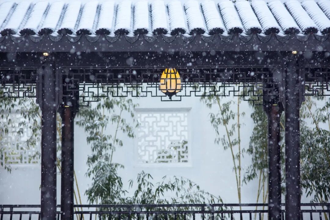 雪线沿着飞檐徐徐铺展,冰晶在松针间悄然驻足……这抹白与建筑、园林共融、共创,让城市喧嚣归于沉静,让人脚步放缓,心绪也随之归于澄明。