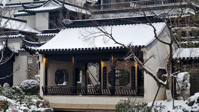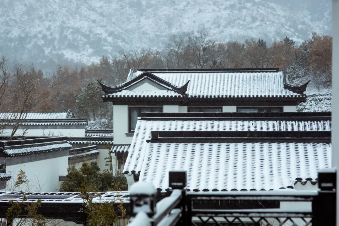 当雪花精心装点着错落的屋檐、精巧的亭角与起伏的绿植,融创社区的轮廓在素裹中更显设计之美,又自成新境。