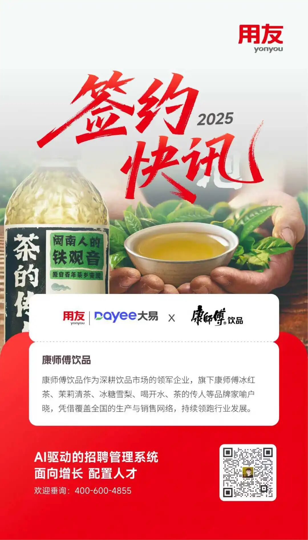 签约!康师傅饮品携手用友招聘云:用AI让招聘更「对味」