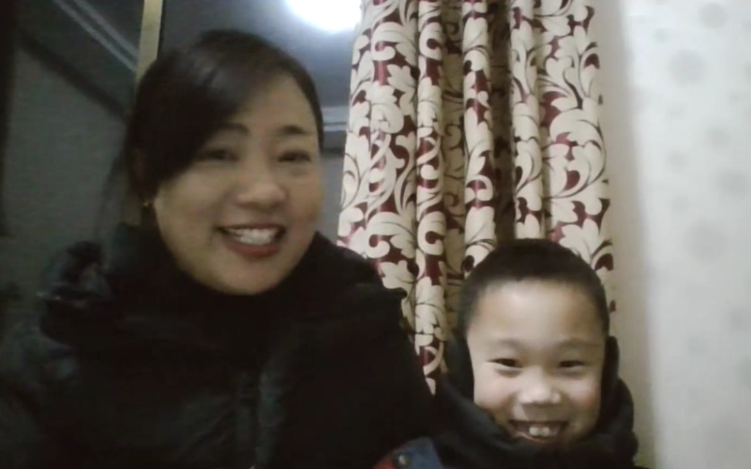 采访中:母子灿烂的笑容