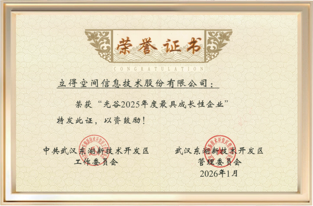 喜报 | 立得空间荣获“光谷2025年度最具成长性企业”称号
