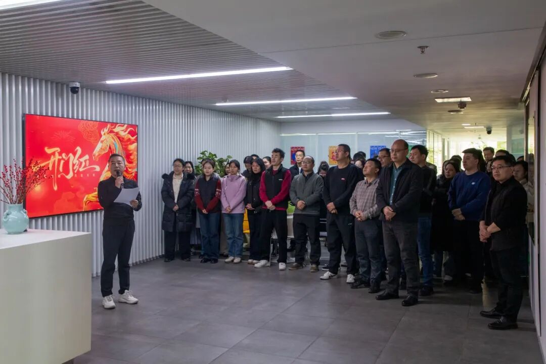 仪式现场暖意融融、喜气盎然,红色的氛围装饰处处彰显着新春的喜悦与对新一年的期许。伴随着热烈的氛围,董事长郝卫东先生发表开工致辞,为全体员工送上新春祝福,也为公司马年发展指明方向、凝聚力量。