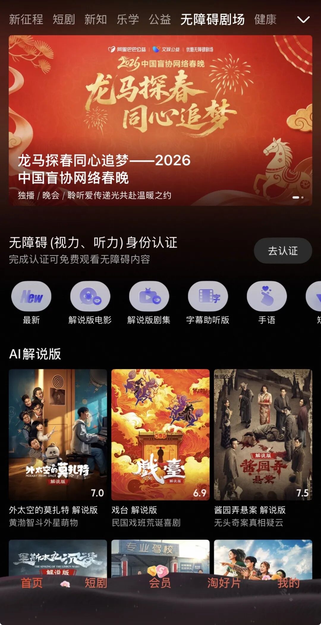 图说:优酷无障碍剧场直播“龙马探春,同心追梦——2026中国盲协网络春晚”。