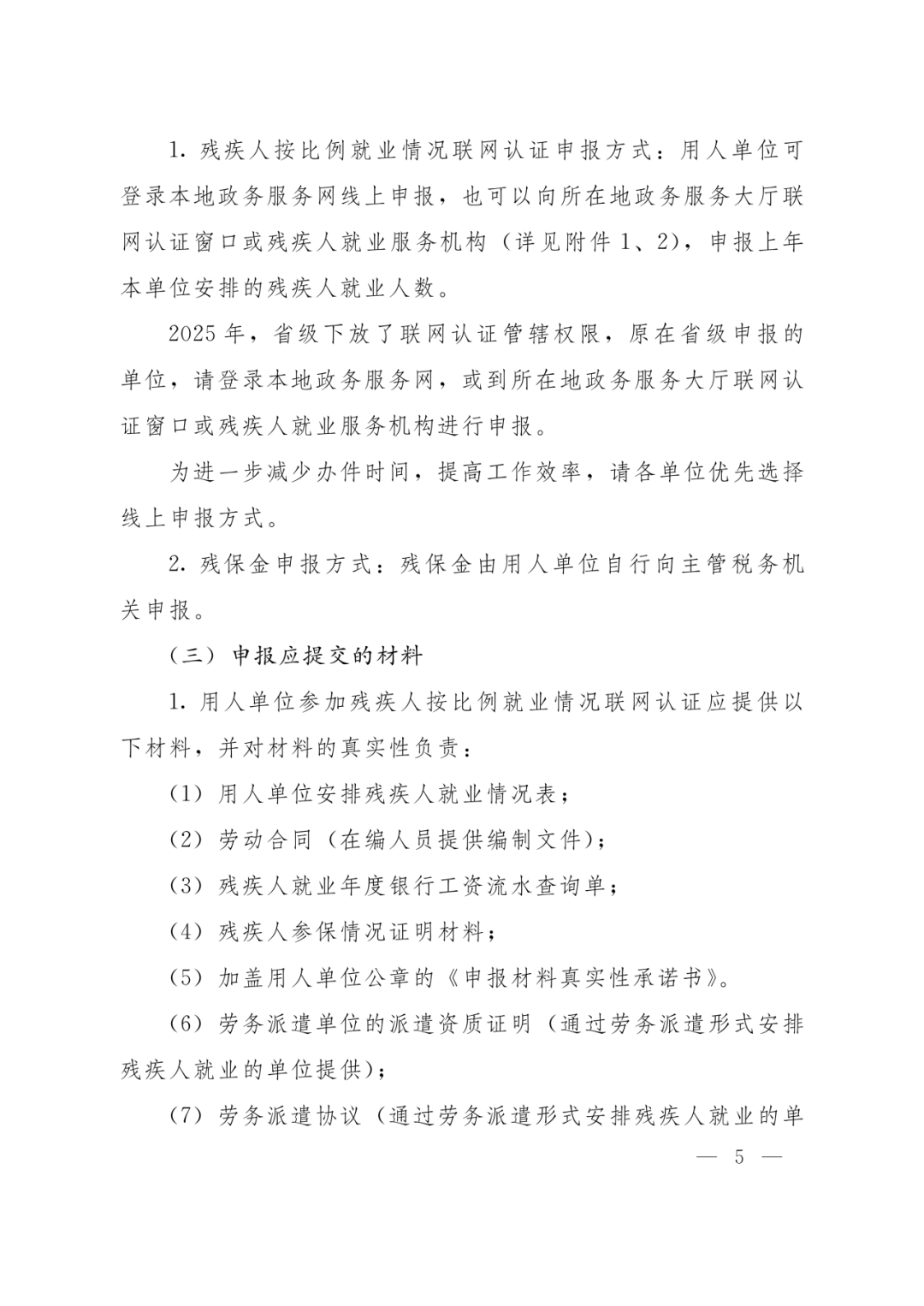 (一)2025年度安排有残疾人就业的用人单位如在规定时限未申报的,视为未安排残疾人就业,由税务机关按规定征收残疾人就业保障金;未安排有残疾人就业的,可直接向税务机关申报缴纳残疾人就业保障金;